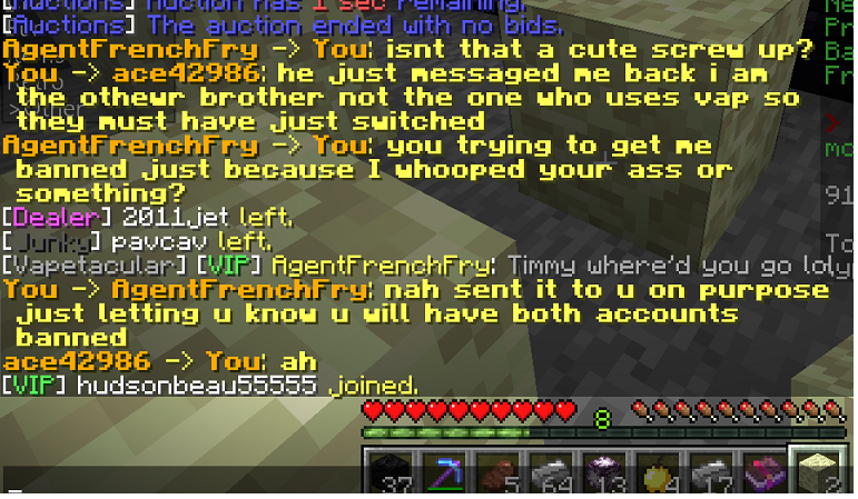 AgentFrenchFry is vap he came onto the server saying he could get on the server on his main account then when i finally got hold of staff i didnt have any screenshoots so took a moment to have him say it was him