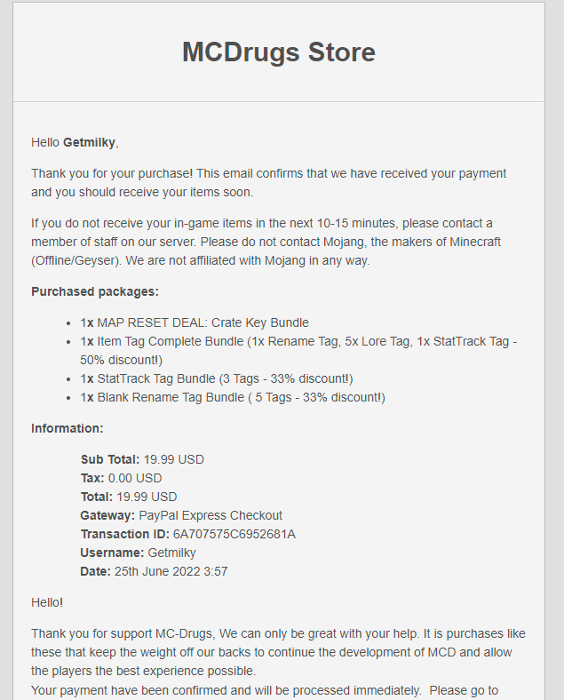 I Purchased keys for my old account name Getmilky instead of my new username DrMilky. May I get the items transferred over?