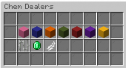 The Traveling Dealer appears only when at least 10 players are online in the Spawn world. It stays for a limited time anywhere from 9 to 16 minutes before departing for 7 to 15 minutes and then reappearing at a new, random location. Due to its unpredictability and limited availability, the Traveling Dealer offers a higher selling rate, buying chems at 1.2x the base price. A message will appear in chat each time it moves, providing a description of its new location. Players can also use the /td command at any time while the Traveling Dealer is present to view this description.